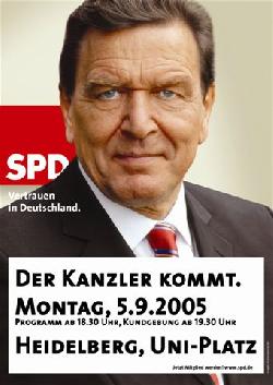Bundeskanzler Gerhard Schröder kommt am Montag, 5. September 2005 zu einer Wahlkampfkundgebung nach Heidelberg.