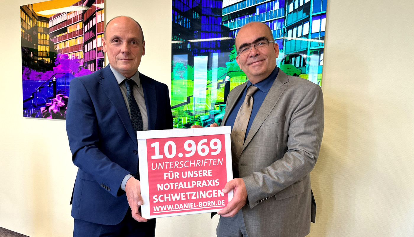 Heute Morgen sind wir sogar schon bei weit über 11.000 Unterschriften. In dieser Woche habe ich dem Vorsitzenden der KVBW die ersten Unterschriften übergeben und im Gespräch noch einmal deutlich gemacht: „Wir akzeptieren die Schließung der Notfallpraxis nicht!“