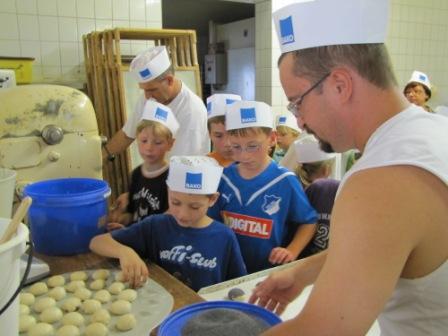 los, um in Reichartshausen die Bäckerei Schilling zu besuchen. Bäckermeister Schilling begrüßte die Kinder herzlich und zeigte ihnen gleich das Herzstück seines Betriebes, die Backstube. Dann wollte er wissen, was sie für das Herstellen eines Brotes oder zum Backen von Brötchen brauchen würden. Dies alles wussten die Epfenbacher Kinder selbstverständlich schon und so konnte es nach dieser „Prüfung“ gleich losge-hen.